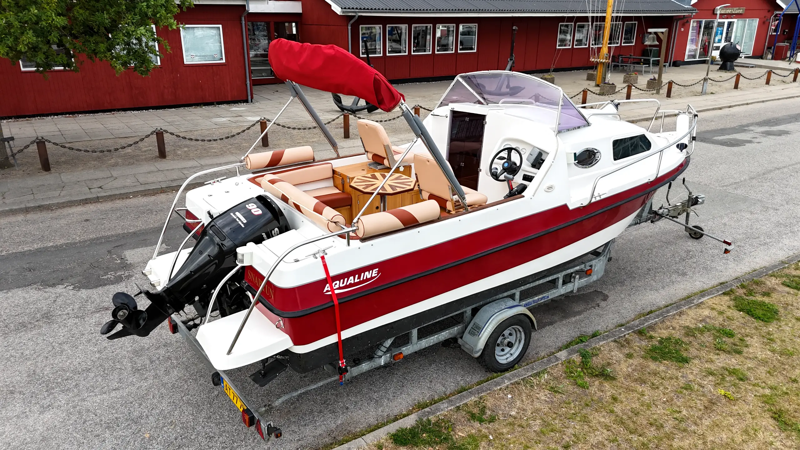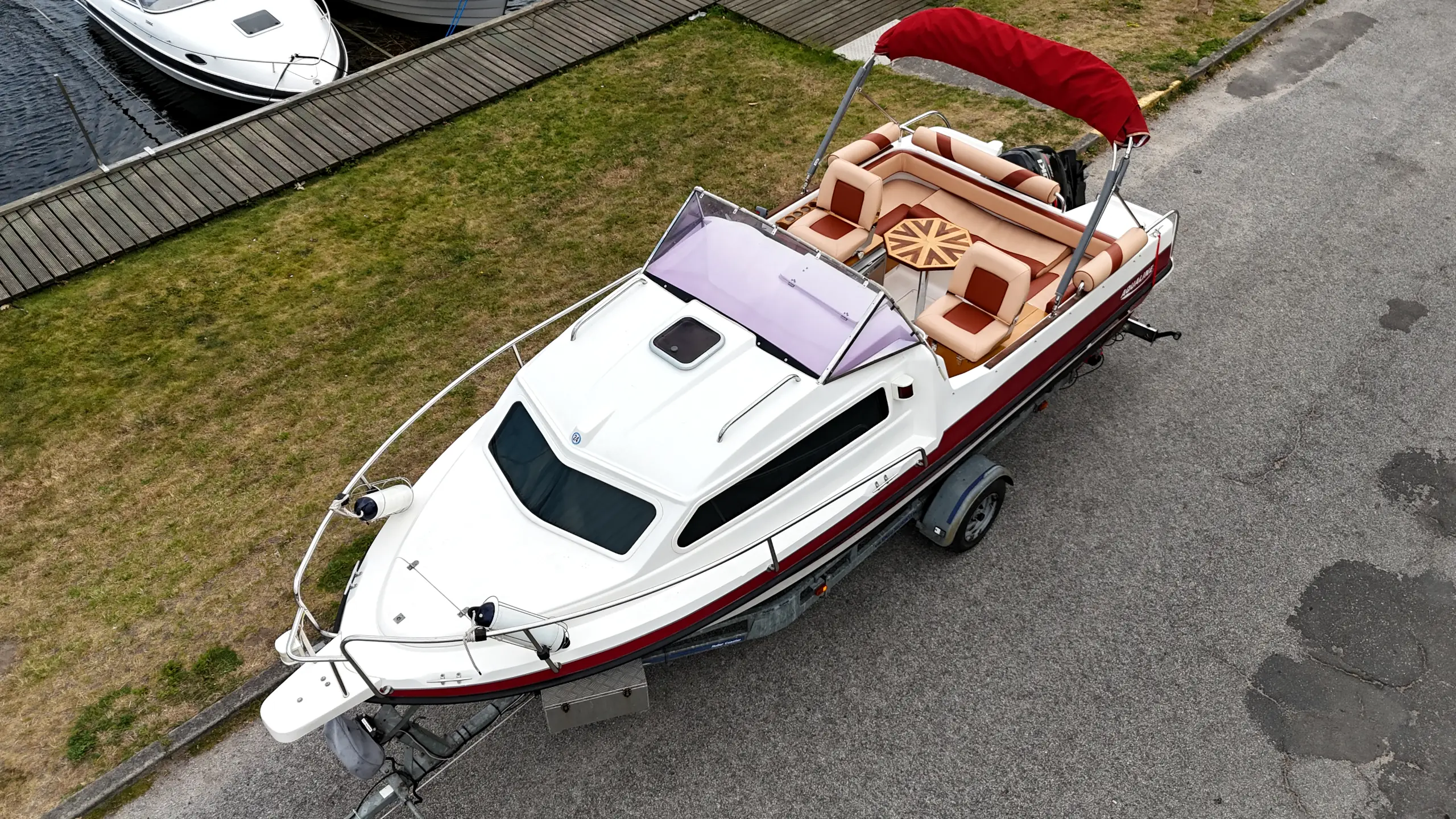 Det absolutte trumfkort ved denne Aqualine 640 er dens status som trailerbåd. Pakken inkluderer en trailer i topkvalitet fra engelske Indespension. Traileren er udstyret med brede dæk for stabil kørsel, elektrisk spil for nem søsætning og er nysynet i april 2025.