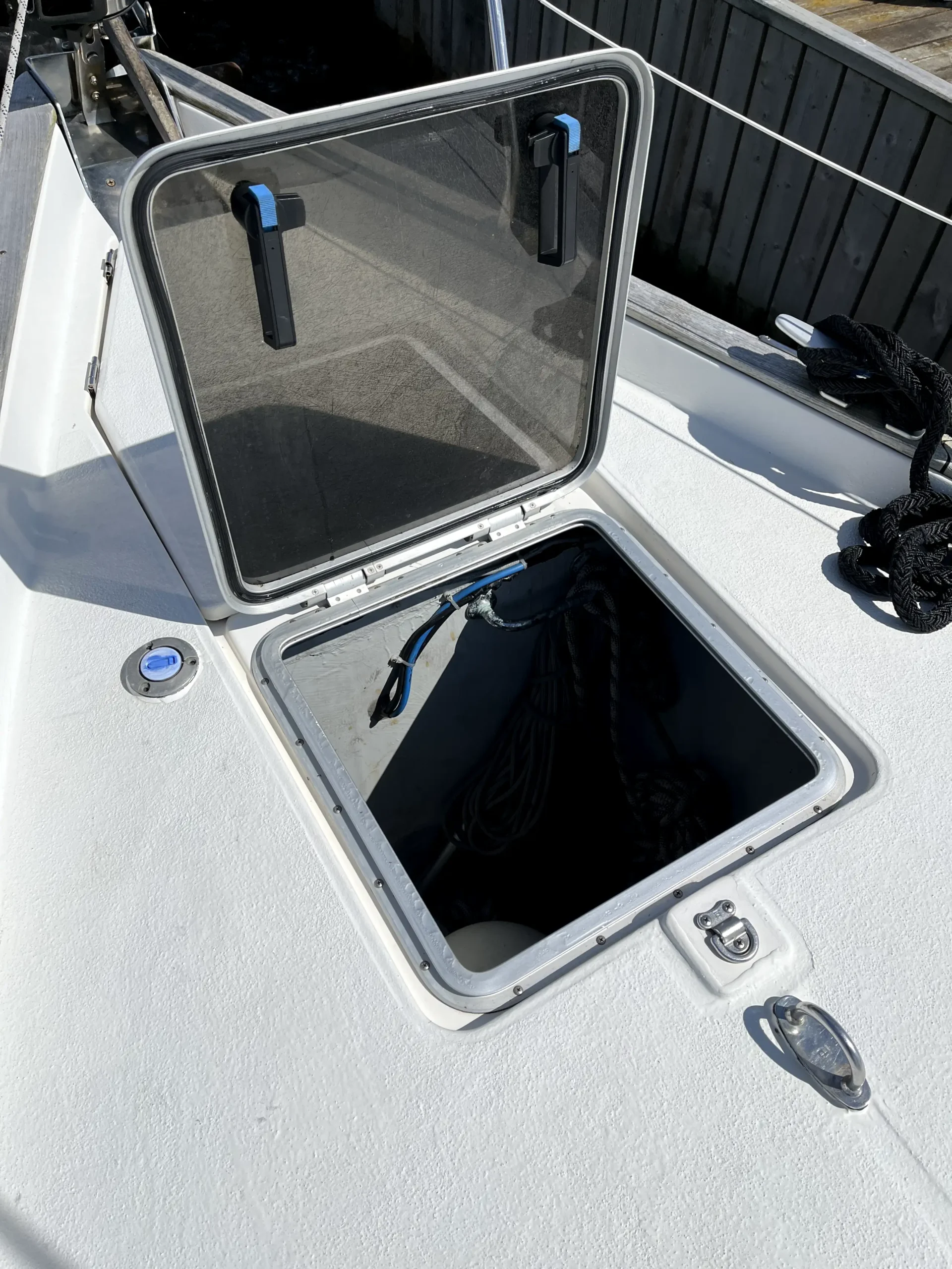 Nye ruder til sprayhood er indkøbt men endnu ikke installeret samt en revne i Lazy bag til sotrsejlet er ikke repareret – begge forhold er medtaget i prissætningen af båden!