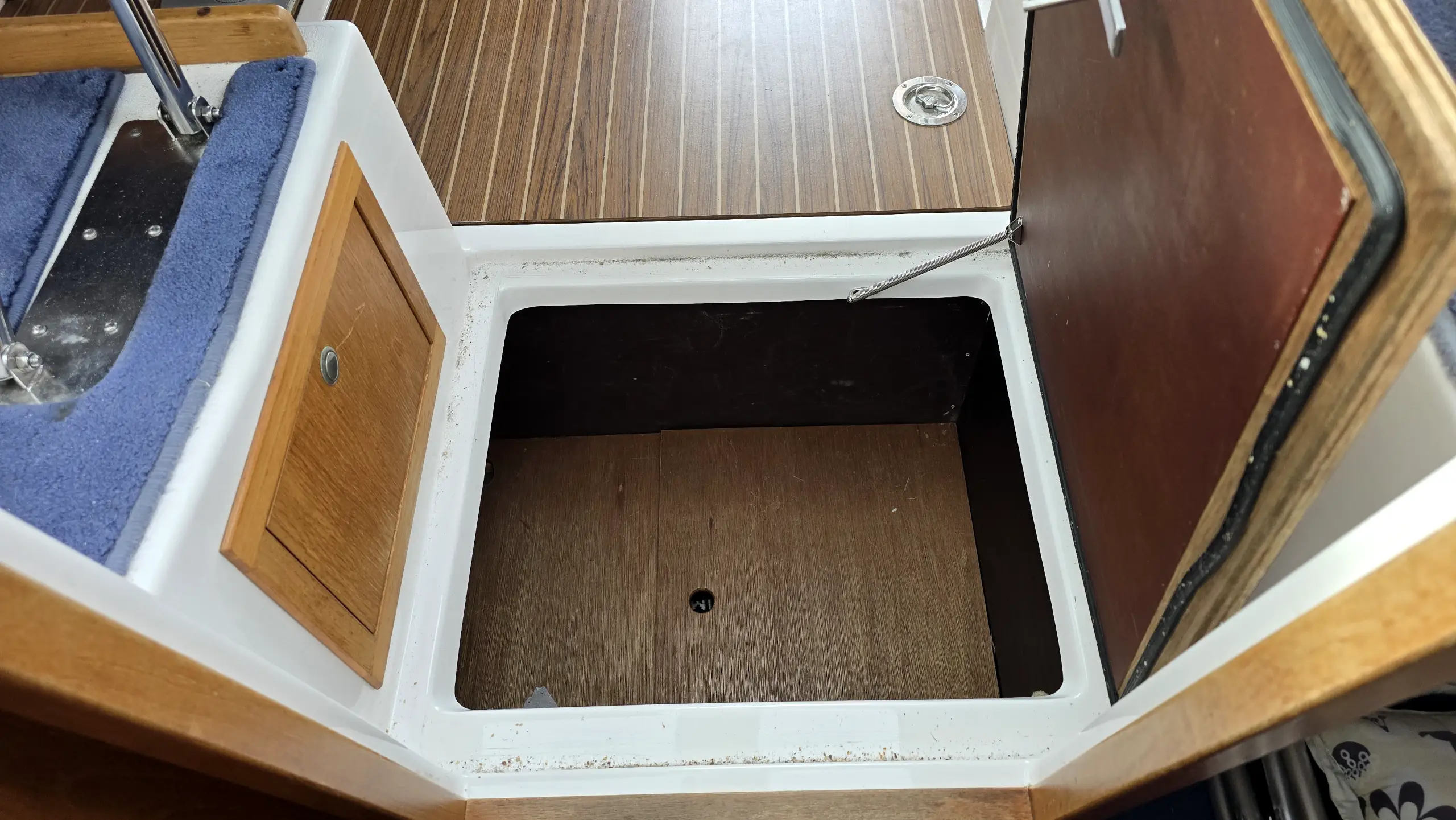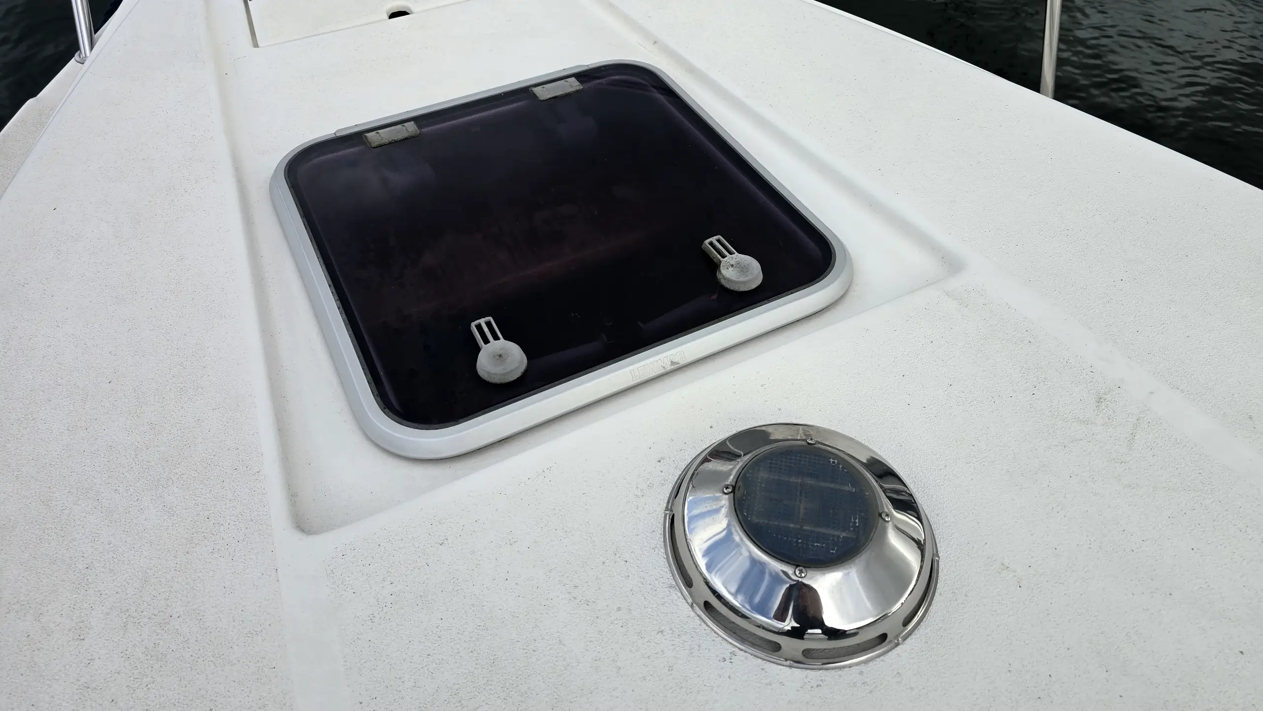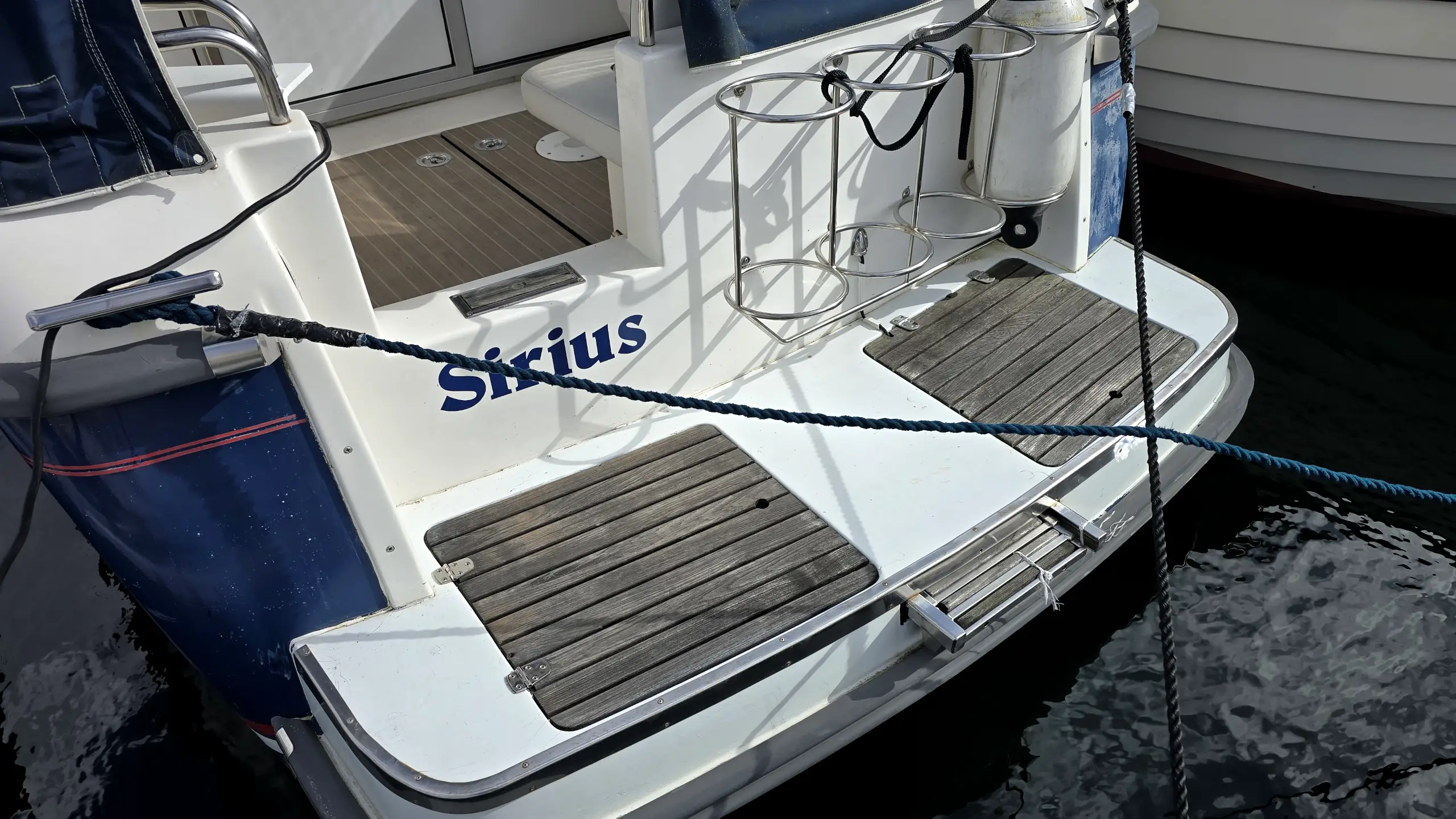 Velkommen ombord, hvor vi træder ind via badeplatformen og lander på agterdækket, som er fuld lukket af med et cockpittelt, der beskytter mod blæst og regn på de kedelige dage. Og kan afmonteres på under 10 minutter så man kan nyde vejret på de helt gode dage.