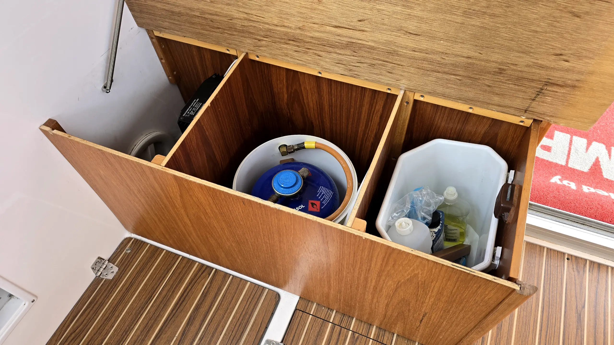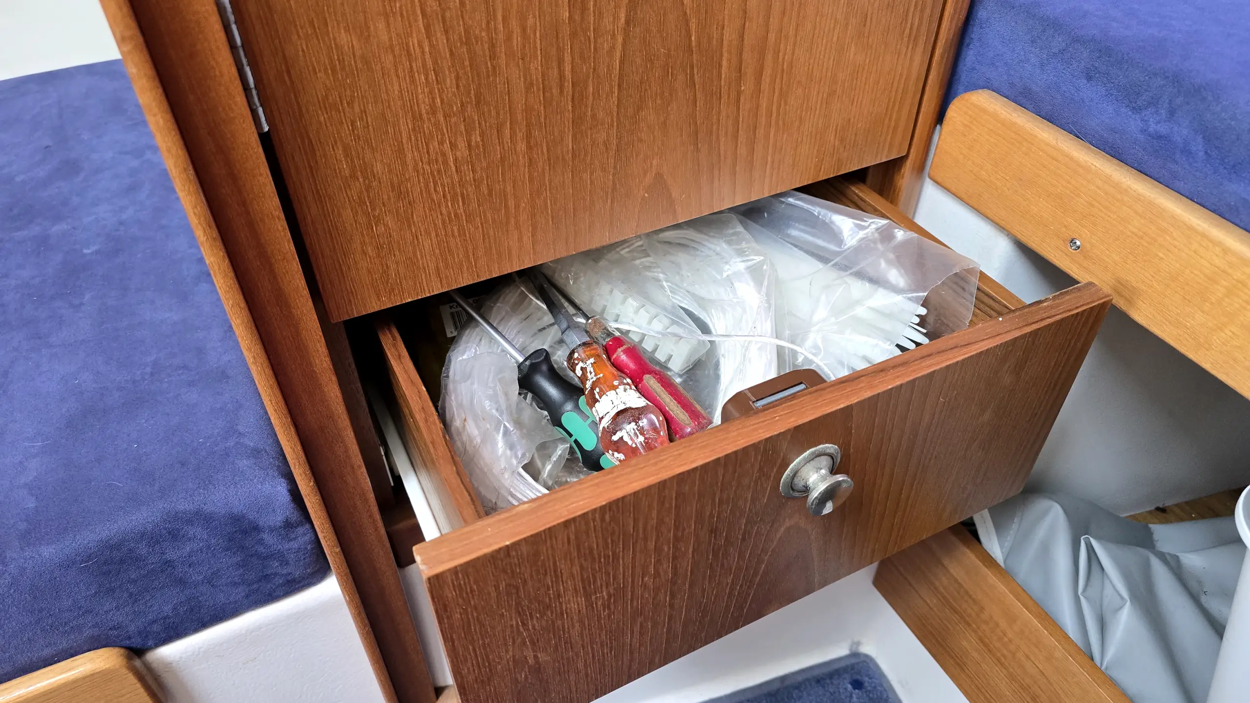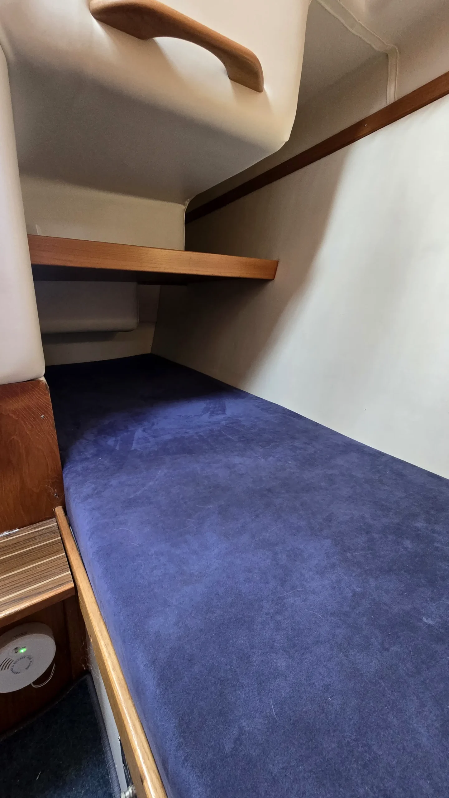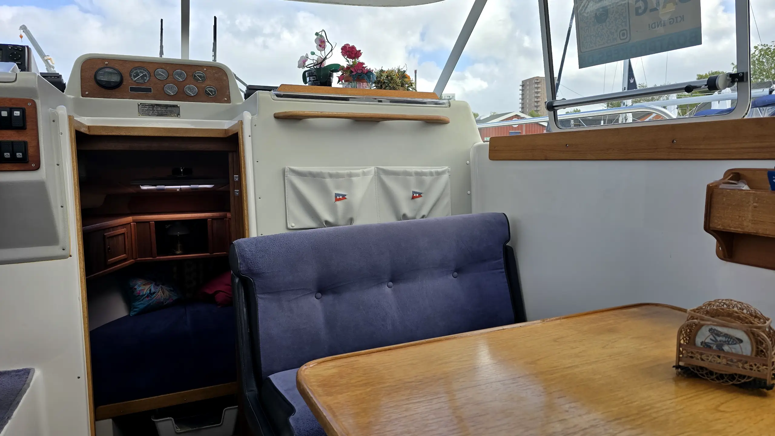 Når dagen nærmer sig slutningen, er der 2 sovepladser i snuden af båden samt en enkelt i stikkøjen i bagbord side. Har man brug for mere, kan sofagruppen i salonnen omdannes til endnu en soveplads.
