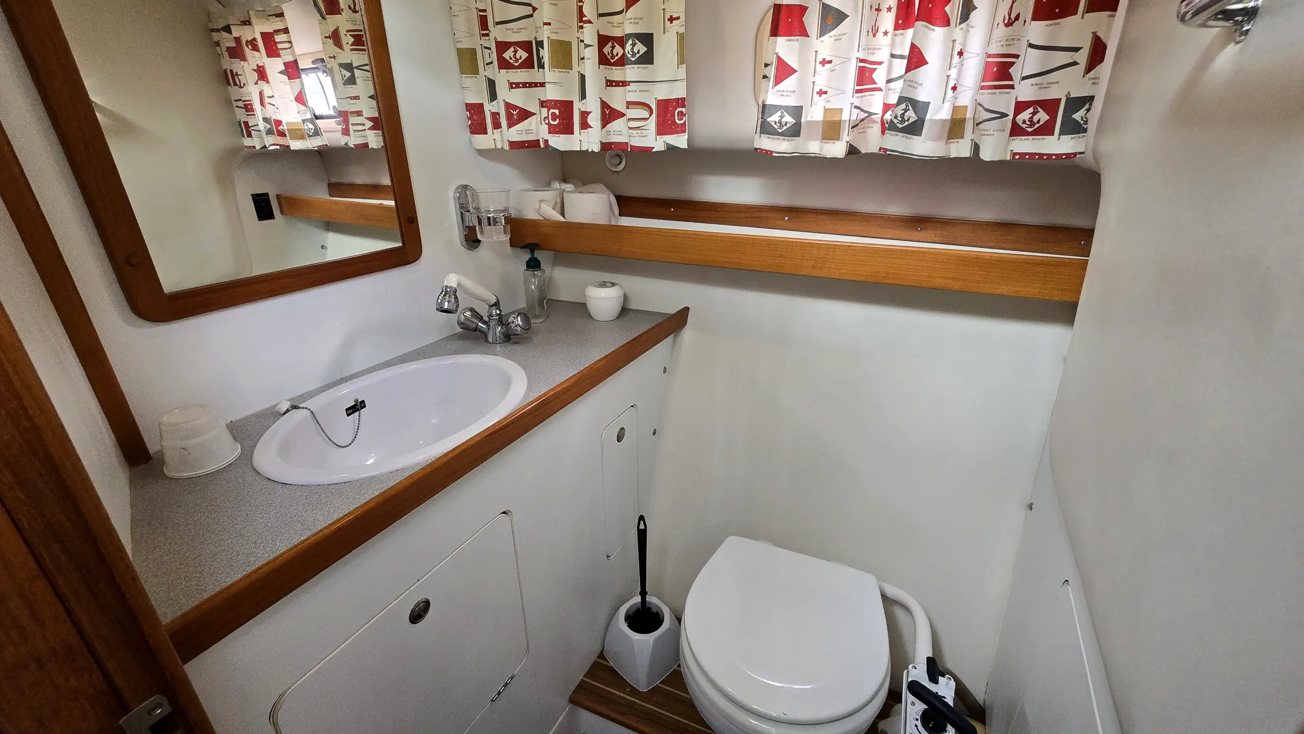 Ved ankomst til ny destination behøver man ikke stresse for at finde et toilet da denne findes ombord, med tilhørende septic tank for maksimal bekvæmhed.