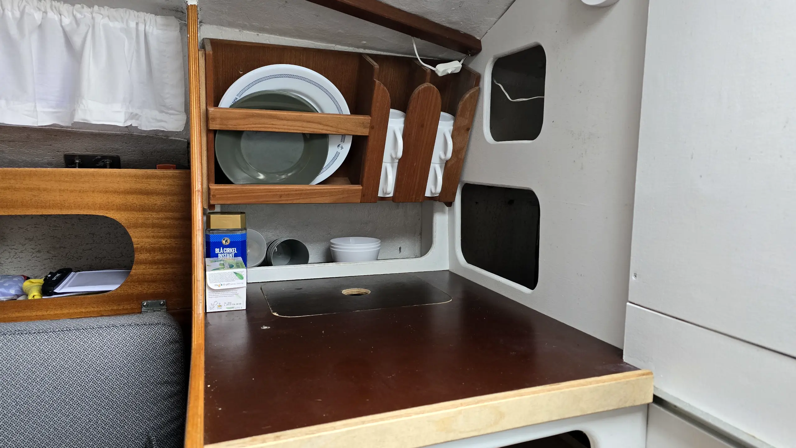 En perfekt begynderbåd til parret eller den lille familie til aftenture eller weekendophold. Alle køjer er ca. 2m lange og der er god stuveplads i stikkøjen i bagbord side. Gasblus, køleskab og kemisk toilet tilføjer ekstra komfort der gør det svært at blive i land i den kommende sejlsæson.